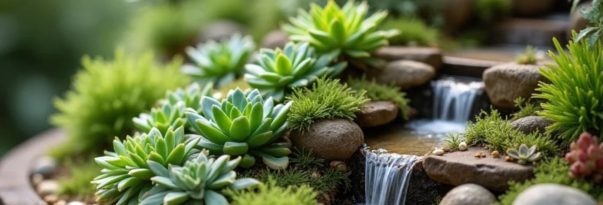 Les plantes succulentes sont idéales pour les jardins miniatures grâce à leur faible besoin en eau et leur croissance lente. Les Echeveria, avec leurs rosettes de feuilles charnues, offrent une grande variété de formes et de couleurs. Les Sempervivum, ou joubarbes, sont particulièrement résistants et forment de jolies touffes compactes.