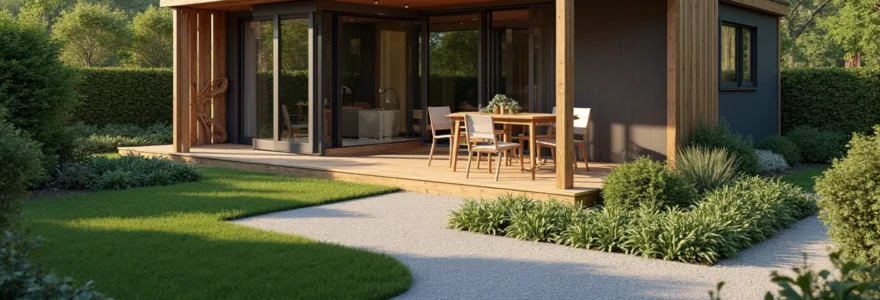 L’aménagement paysager autour de l’abri est crucial pour créer une transition harmonieuse entre la structure et le reste du jardin. Un design réfléchi peut transformer l’abri en un élément central attrayant plutôt qu’en une simple construction utilitaire. L’objectif est de fusionner l’abri avec son environnement de manière organique et esthétique.