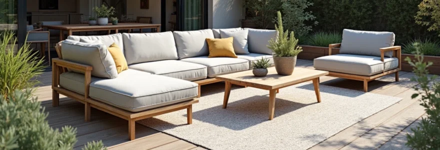 Les coussins jouent un rôle crucial dans le confort de votre mobilier d’extérieur. Optez pour des coussins en mousse haute résilience, qui offrent un soutien optimal tout en conservant leur forme au fil du temps. Les housses déhoussables facilitent l’entretien et vous permettent de changer facilement le look de votre espace. Choisissez des tissus traités anti-UV et déperlants pour une durabilité accrue.